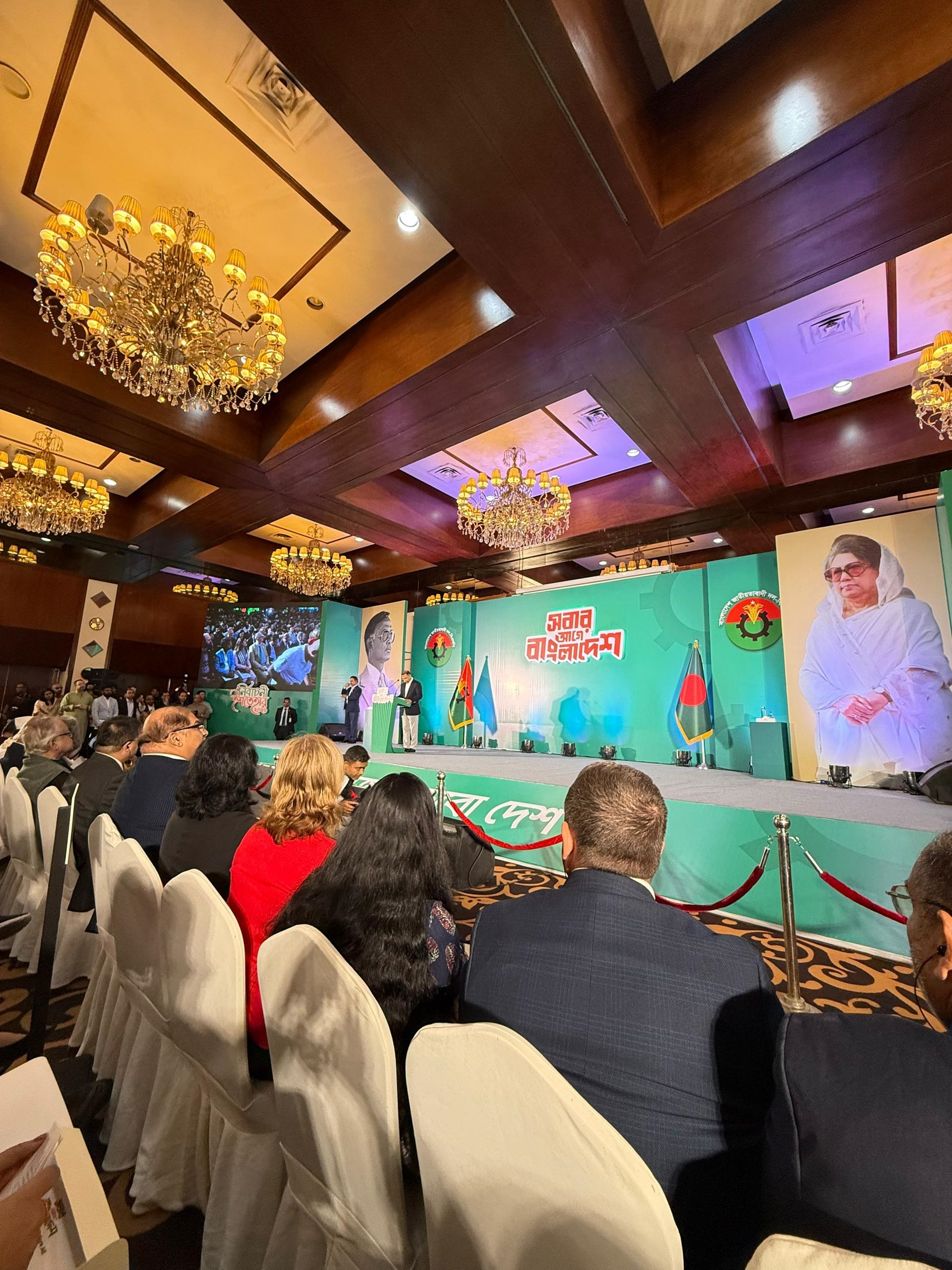 براساس دعوت حزب ملی گرای بنگلادش برای مشارکت سفارت جمهوری اسلامی ایران در داکا در مراسم رونمایی از مانیفست انتخابات این حزب، نماینده سفارت جمهوری اسلامی ایران در داکا مورخ 18 بهمن 1404 در این مراسم حضور یافت. آقای طارق رحمان رئیس حزب بی ان پی پس از ارائه مانیفست انتخاباتی با دیپلماتهای حاضر در این مراسم دیدار کوتاهی انجام داد.