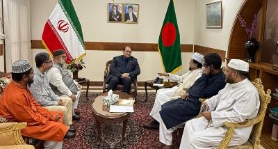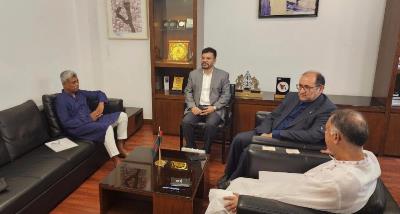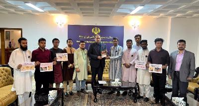 جناب آقای دکتر رحیمی جهان آبادی سفیر محترم جمهوری اسلامی ایران در بنگلادش مورخ 1 فروردین 1405 به مناسبت عید سعید فطر با آقای دکتر شفیق الرحمان امیر جماعت اسلامی و رئیس اپوزیسیون پارلمان بنگلادش دیدارنمود.