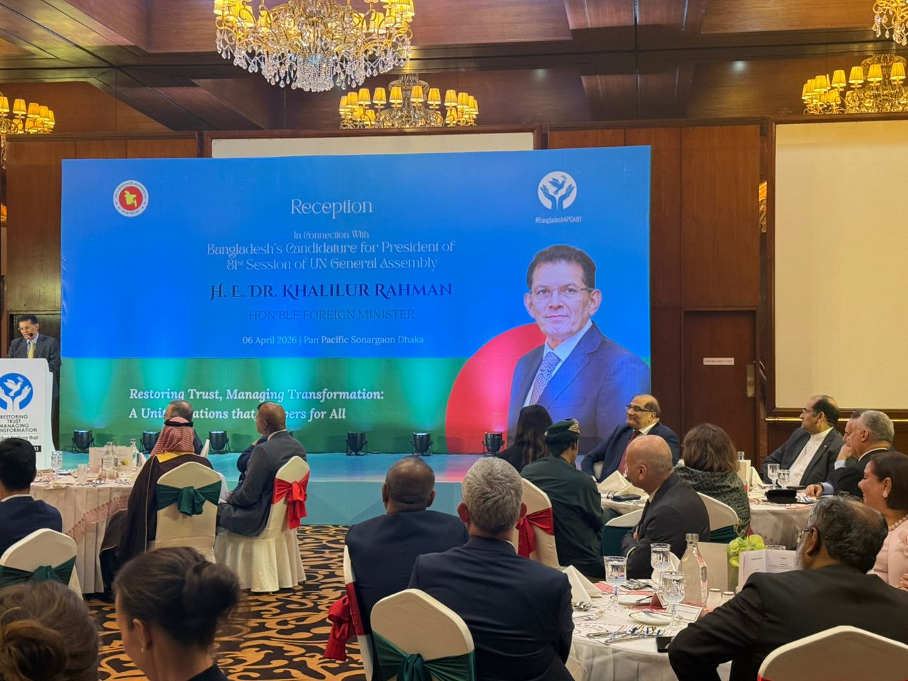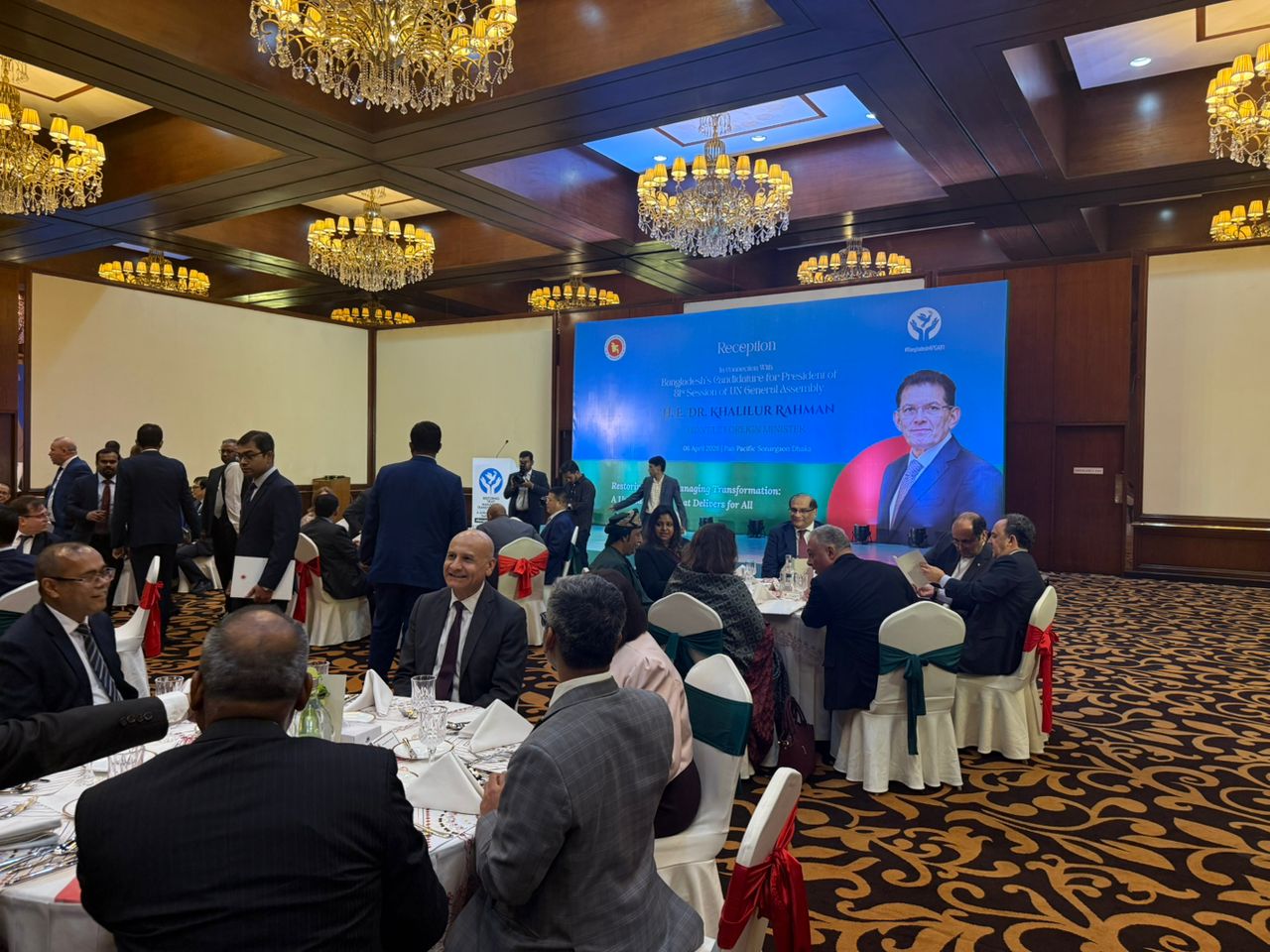 مورخ 17 فروردین 1405 آقای دکتر رحیمی جهان آبادی سفیر محترم جمهوری اسلامی ایران در بنگلادش در میهمانی دیپلماتیک آقای خلیل الرحمان وزیر امور خارجه بنگلادش شرکت کرد. این میهمانی بمنظور حمایت از کاندیدای بنگلادش برای ریاست هشتاد و یکمین جلسه مجمع عمومی سازمان ملل برگزار گردید. خلیل الرحمان وزیر امور خارجه این کشور نامزد پست ریاست هشتاد و یکمین جلسه مجمع عمومی خواهد بود.