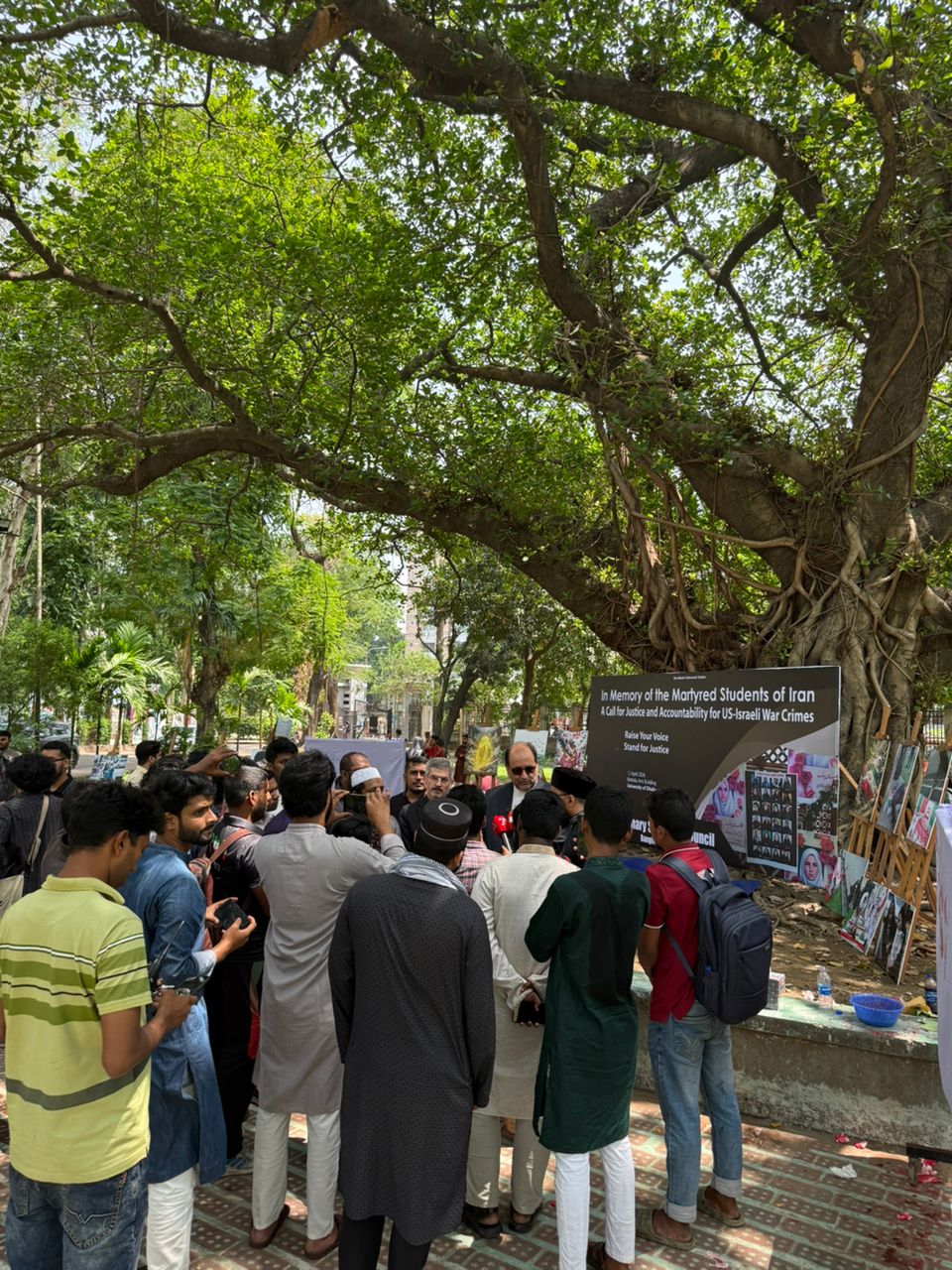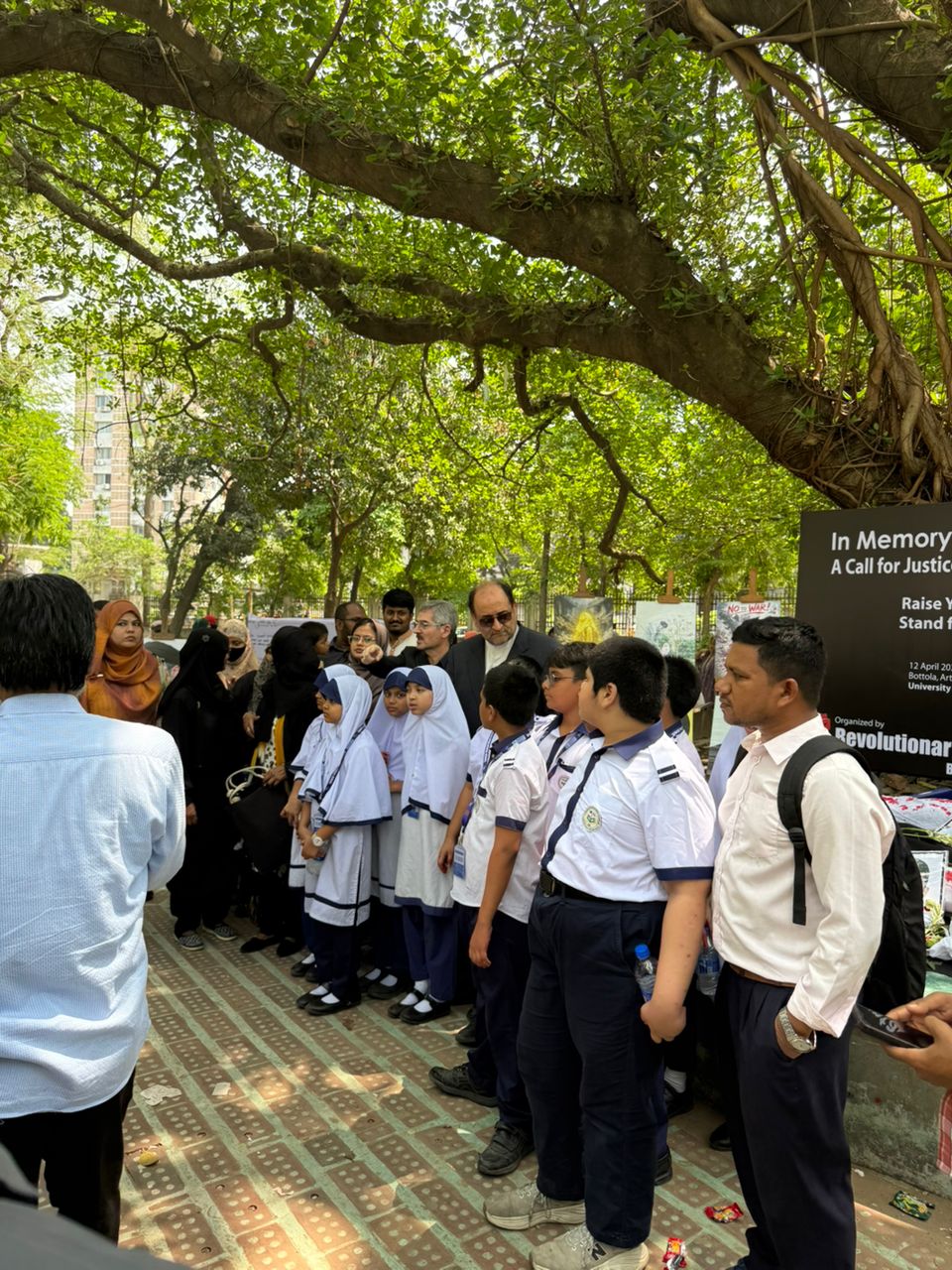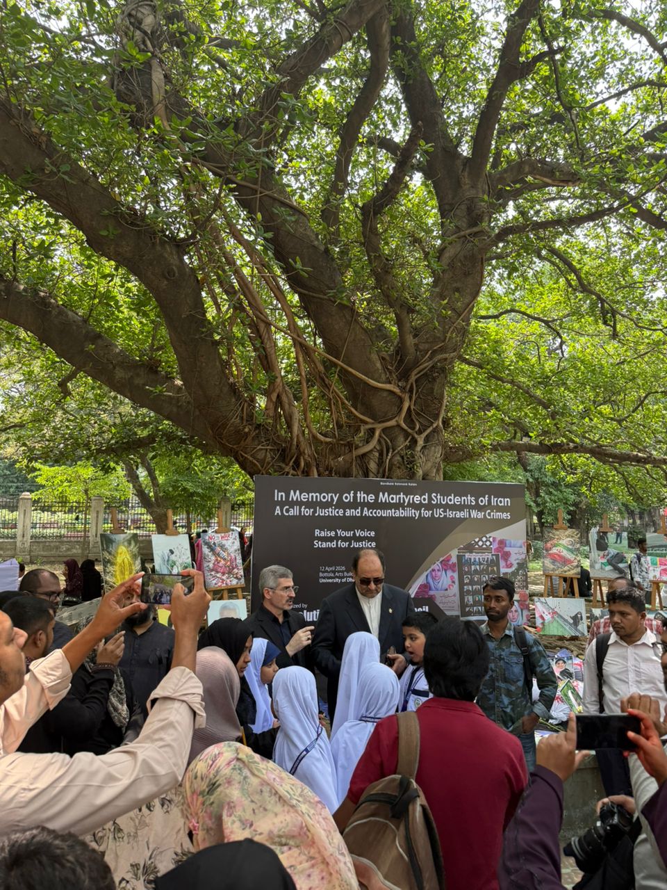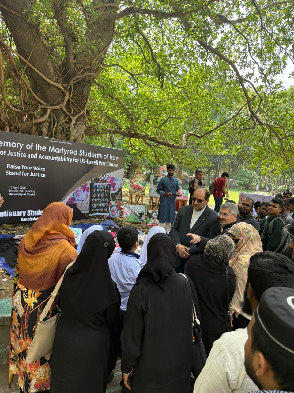 مورخ 22 فروردین 1405 آقای دکتر رحیمی جهان آبادی سفیر محترم جمهوری اسلامی ایران در بنگلادش از نمایشگاه یادبود دانش آموزان مدرسه میناب که در دانشگاه داکا برگزار شد بازدید کردند. در این مراسم سفیر کشورمان ضمن قدردانی از برگزار کنندگان این نمایشگاه، طی گفتگو با برخی رسانهها به جنایت رژیم تروریستی آمریکا در کشورمان و بمباران مدرسه میناب مطالبی را ارائه کردند.